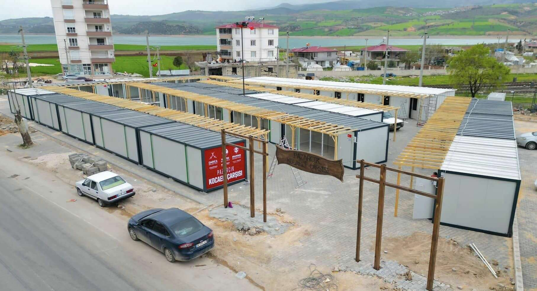Kahramanmaraş Pazarcık’ta 30 konteynırdan oluşan Kocaeli Çarşısı’nın kısa sürede tamamlanacağını belirten yetkililer, “Tamamlandığı anda çekilecek kura ile esnafımıza yerlerini teslim edeceğiz” denildi. Pazarcık İlçesi esnafı da desteklerinden dolayı Körfez Belediyesi, Darıca Belediyesi ve Dilovası Belediyesi’ne teşekkür etti.