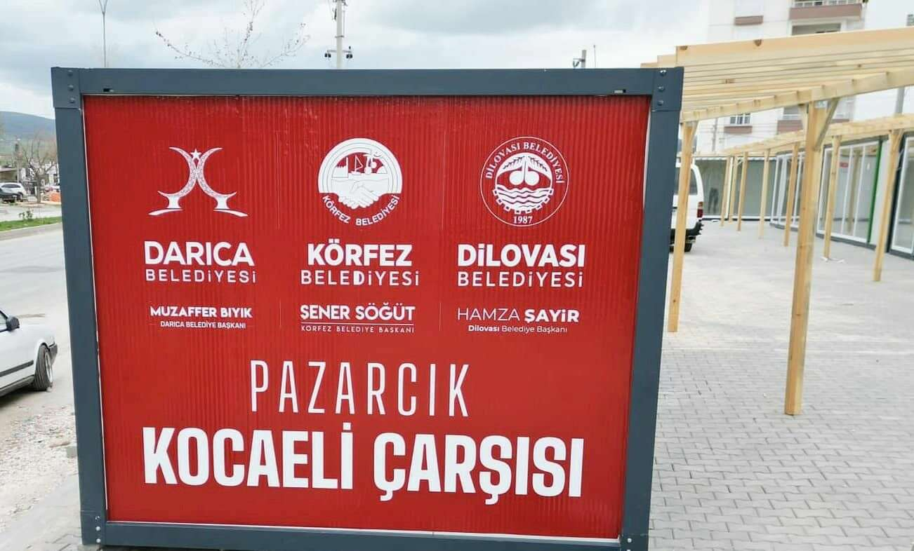 Körfez Belediyesi, Darıca Belediyesi ve Dilovası Belediyesi tarafından Kocaeli Valisi Seddar Yavuz’un öncülüğünde Pazarcık’ta yapımına başlanan konteynır çarşı için çalışmalar devam ediyor. Kahramanmaraş Merkezde yapımı tamamlanan Kocaeli Çarşısı’nın ikincisi olan Pazarcık’taki Kocaeli Çarşısı’nda konteynırlar yerleştirildi, son hazırlıklar gerçekleştiriliyor.