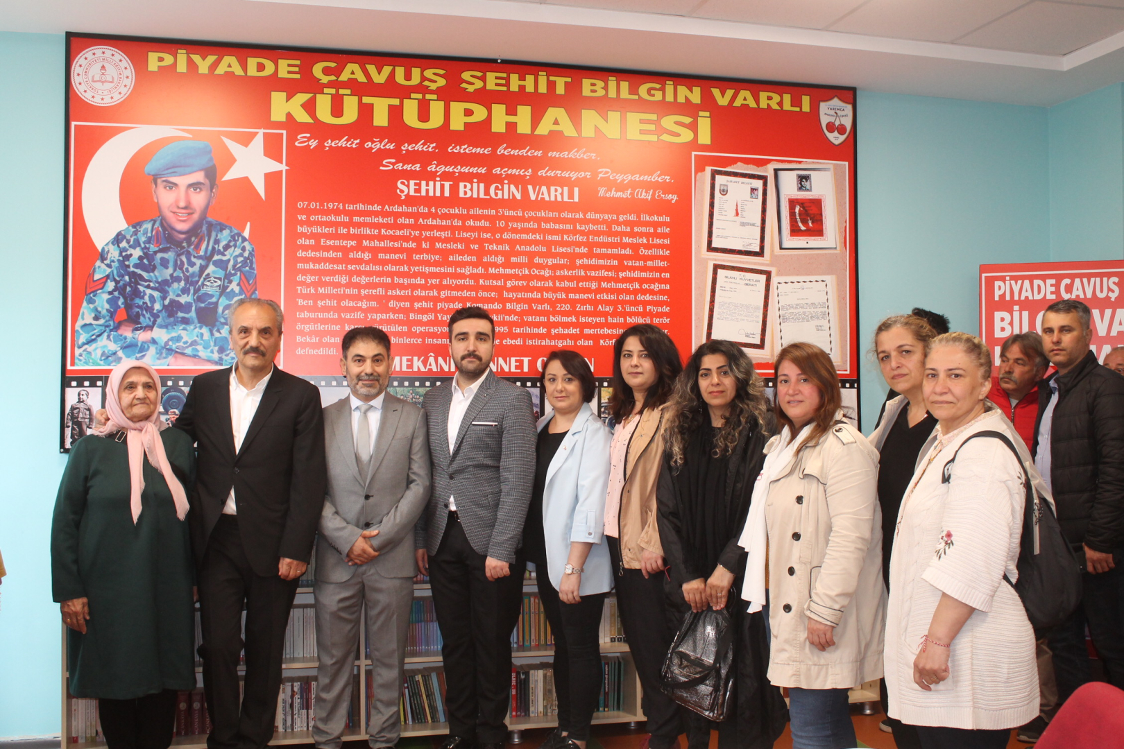 Programda Şehidimiz Bilgin Varlı’nın annesi Tacire Varlı’ya özel, üzerinde şehidimizin resminin ve isminin özel işlemeli plaketi takdim edildi. Ayrıca şehit ailesine Kur’an-ı kerim ve bir adet Türk Bayrak’ı hediye edildi. Daha sonra ise kütüphanenin kurdelesi, protokol mensupları ve şehit aileleri tarafından kesildi. Katılımcılar kütüphaneyi gezerek, yetkililerden bilgi aldılar. Şehidimizin dayısı Avukat Naci Kara ise yaptığı konuşmada; şehidimizin Türk Milliyetçi si olduğunu vurguladı ve duygu dolu bir konuşma yaptı.