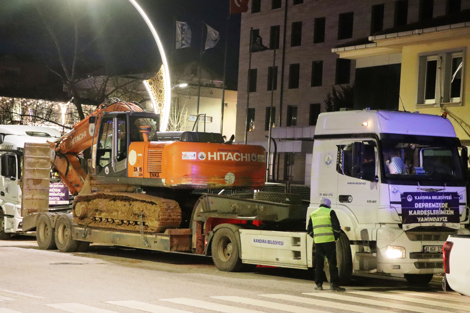 Konuyla ilgili sosyal medya hesaplarından açıklama yapan Kandıra Belediye Başkanı Adnan Turan, ‘’ Kandıra Belediyesi Fen İşleri Müdürlüğümüz ve iş insanı gönüllülerden oluşan iş makinesi ve yardım ekiplerimiz deprem bölgesine doğru yola çıktı. AFAD ile görüşmeler neticesinde; 5 adet paletli ekskavatör, 1 adet 4x4 pickup, 5 tır, 8 operatör, 9 şoför olmak üzere 17 personel görevlendirildi. Rabbim yolunuzu açık etsin. Tüm görevlilerimizden ve emeği geçenlerden razı olsun.’’ Dedi.