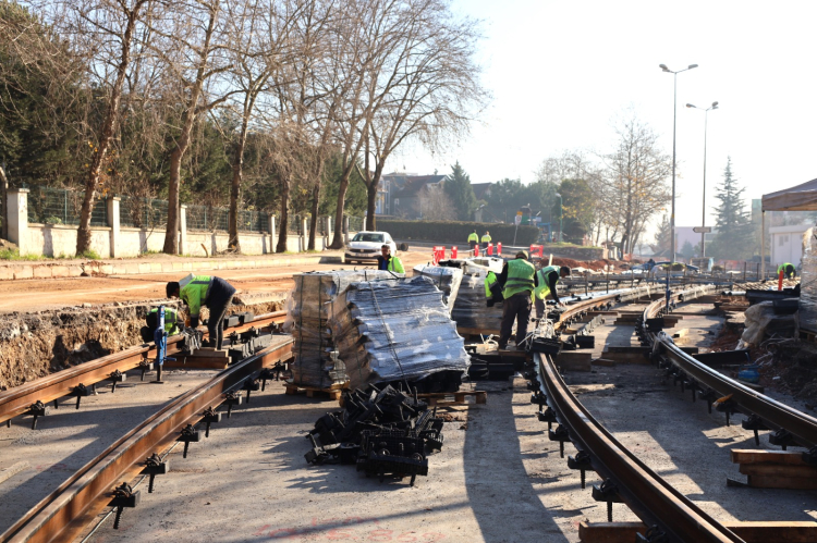Büyükşehir Belediyesi Raylı Sistemler Daire Başkanlığı tarafından yürütülen tramvay hattı projesinde rayların döşeme çalışmaları tüm hızıyla devam ediyor. Bu kapsamda altyapısı tamamlanan Fatma Seher Hanım Caddesi ile Albay Karaosmanoğlu Caddesi kesişiminden, Sultan Murat Caddesi ve trafiğe kapatılan Anadolu Otoyolu alt geçidinde raylar serilirken, bir yandan ise döşenen rayların kaynakları büyük titizlikle yapılıyor. Yağmursuyu, içme suyu, atık su, elektrik ve telekom hattı çalışmalarının devam ettiği proje tamamlandığında ulaşım daha konforlu ve hızlı hale gelecek. Ayrıca bu çalışmalarla birlikte tramvay hattının 1 kilometrelik güzergâhı da tamamlanmış olacak.