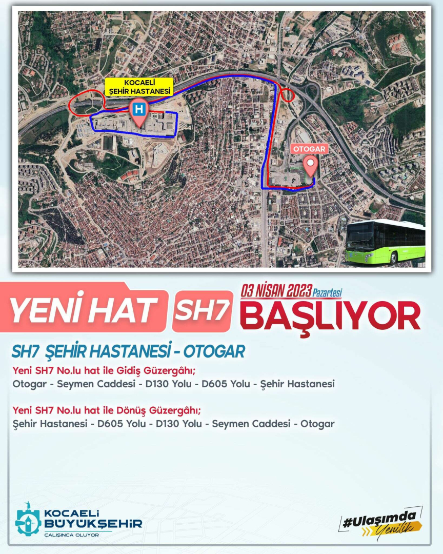 Alikahya - Karadeniz Mah. - Yuvam Akarca bölgeleri ve Körfez, Gebze, Çayırova, Dilovası, Gölcük, Karamürsel, Kartepe ve Kandıra ilçelerinden Otogar bölgesinde inen vatandaşlar ve diğer illerden gelen vatandaşların aktarmalı olarak Şehir Hastanesine erişimi sağlanacak. SH7 hattı Ekspres Ring şeklinde çalışacak.Körfez, Gebze, Çayırova, Dilovası, Gölcük, Karamürsel, Kartepe ve Kandıra İlçelerinden gelen Belediye/Ulaşımpark hatlarındaki ana tarifeleri kullanan yolcular bu hat ile ücretsiz veya tamamlayıcı aktarma ile Şehir hastanesine ulaşabilecek.