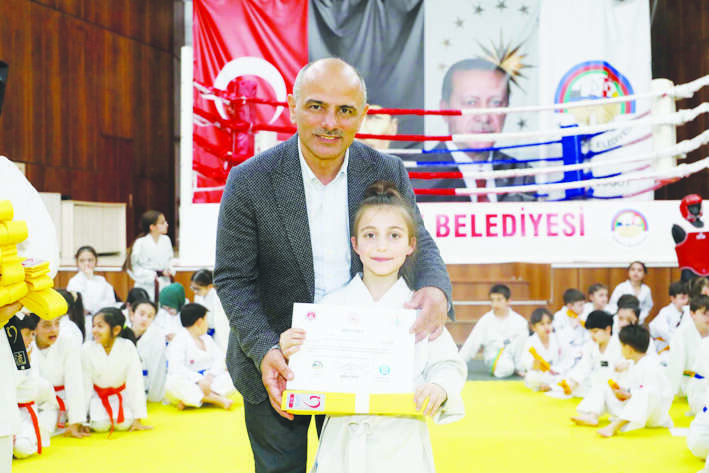 Tören öncesinde konuşan Başkan Şener Söğüt, “Kuşak terfi töreninde sizlerle bir araya gelerek heyecanınıza ortak olmaktan dolayı mutluluk duyuyorum. Hedefimiz, daha fazla gencimizi sporla buluşturmak. Her yaştan çocuğumuz için 16 branşta eğitimler veriyoruz. 4 bini geçen gencimizi sporla buluşturuyoruz. Özellikle bu alanda çocuklarımıza ve gençlerimize desteğimiz devam edecek. Pırıl pırıl gençlerimizin yetiştiren velilerimize de teşekkürlerimi sunuyorum” dedi.