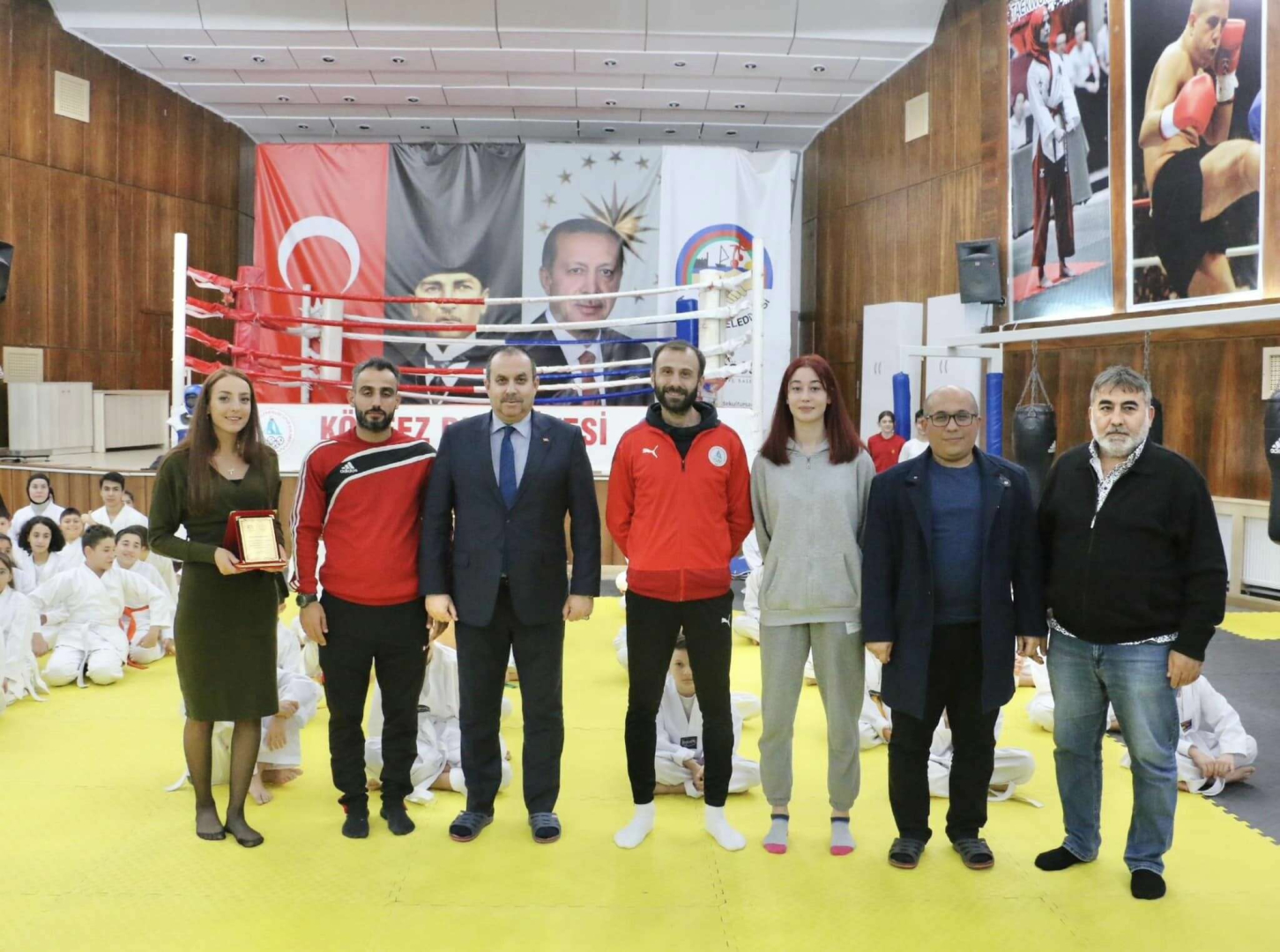 Karate ve Taekwondo eğitimi gören ve kuşak terfi sınavında başarılı olan 200 sporcunun kuşakları tek tek takdim edilirken, programda kısa da bir konuşma yapan Başkan Yardımcısı Osman Yurt, “Başkanımızın hepinize çok selamı var. Kendisi çok arzu etti ama yoğun programı dolayısıyla katılamadı. Bizler de sizlerin heyecanına ortak olmak için” dedi.
