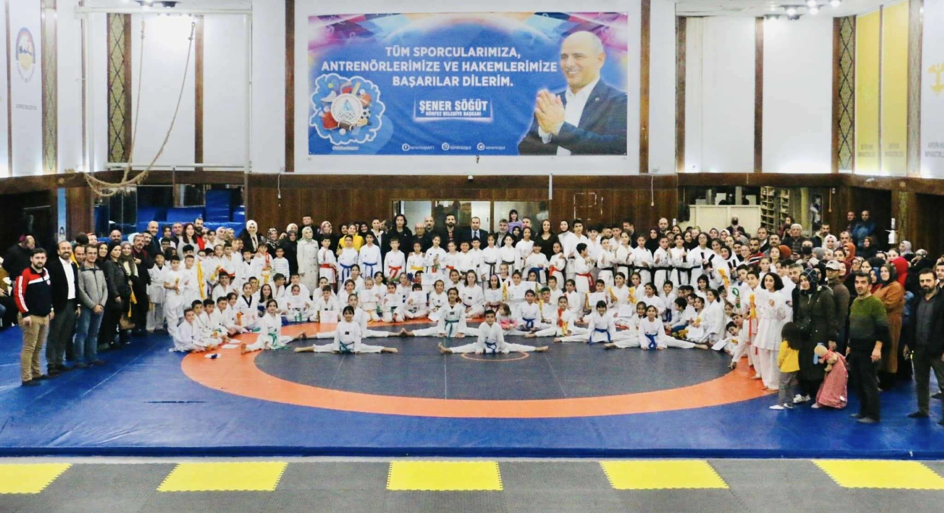 Körfez Belediyesi Gençlerbirliği Spor Kulübü'nde Karate ve Taekwondo eğitimi gören ve kuşak terfi sınavında başarılı olan 200 sporcu yeni kuşakları verildi