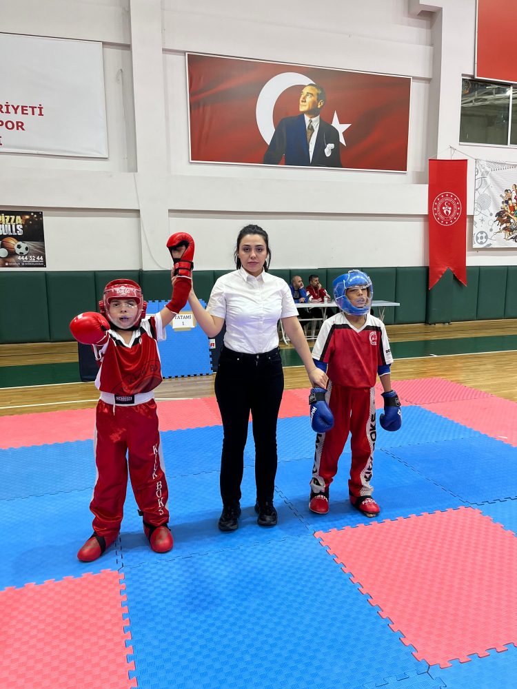 Derince Spor Salonu’nda yapılan Türkiye Kick Boks Şampiyonası Kocaeli İl Seçmeleri’nde Körfez Gençlerbirliği Spor Kulübü sporcuları;